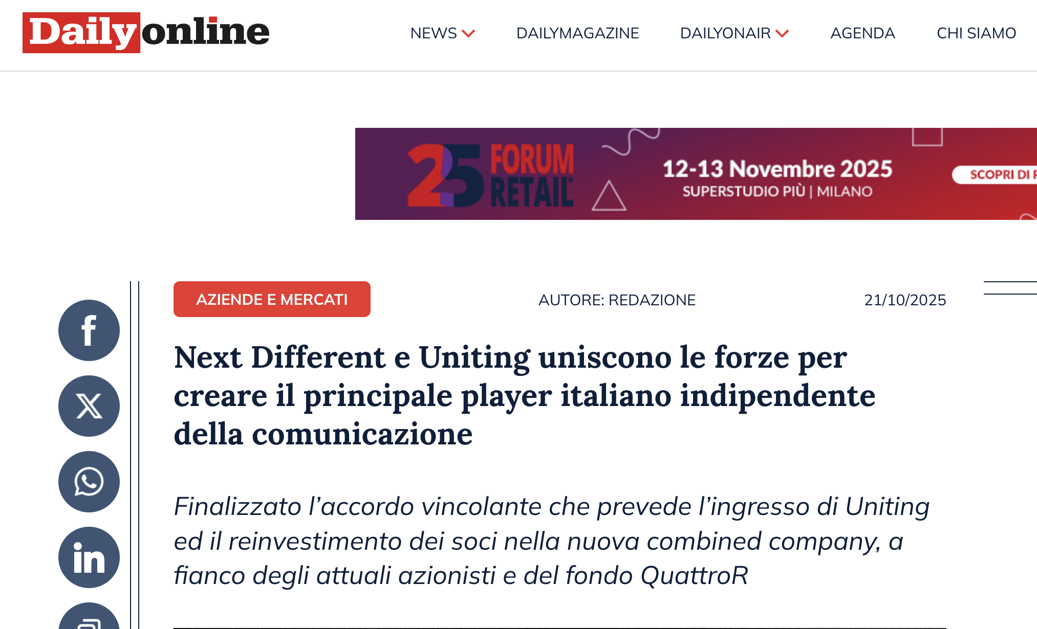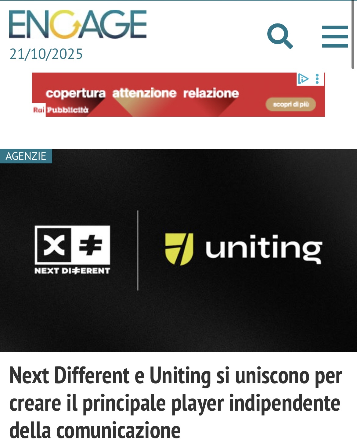 Next Different e Uniting uniscono le forze per creare il principale player italiano indipendente della comunicazione